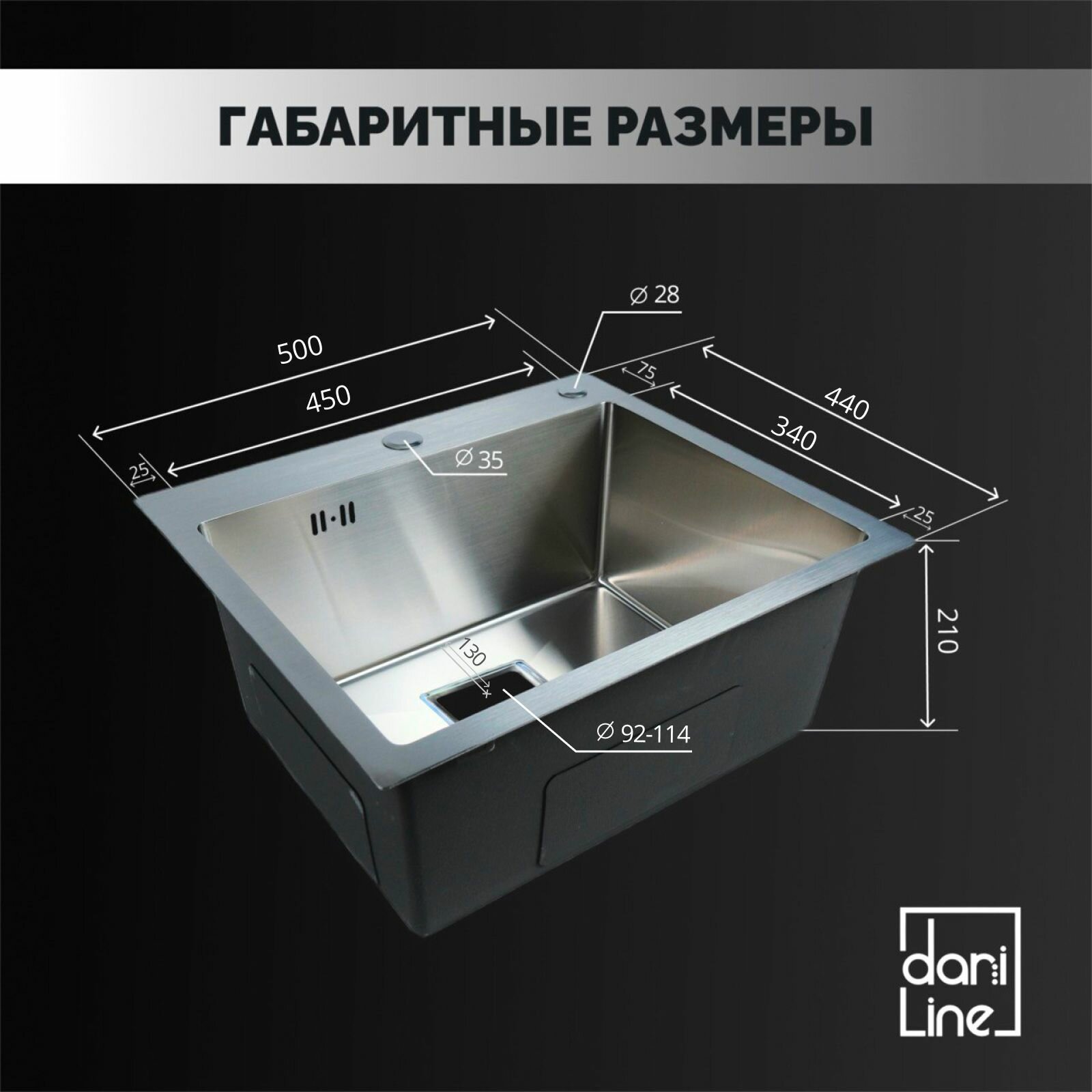 Мойка для кухни с квадратным сливом из нержавеющей стали, 50х44х21,цвет сатин,кухонная мойка, раковина для кухни 18 347 ₽ Подробнее