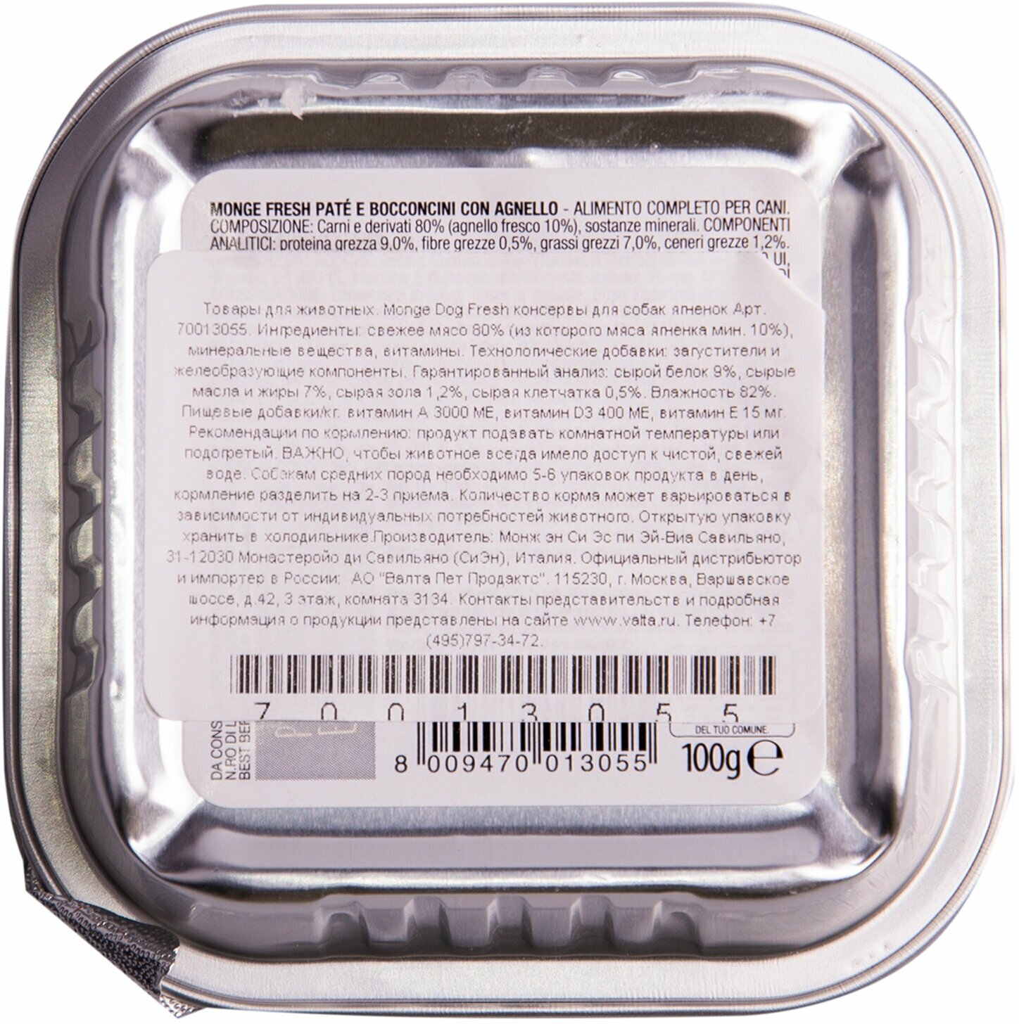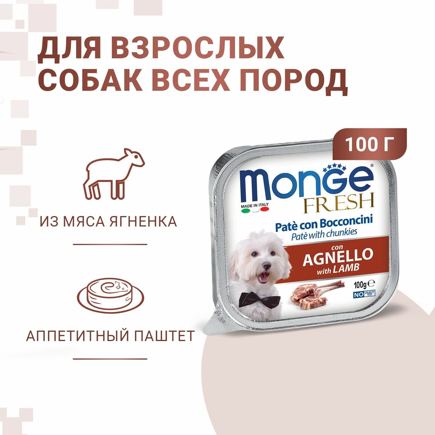 Корм для собак Консервы Monge Dog Fresh Монж Фреш для взрослых собак паштет из ягненка (100 гр. x 32 шт.)