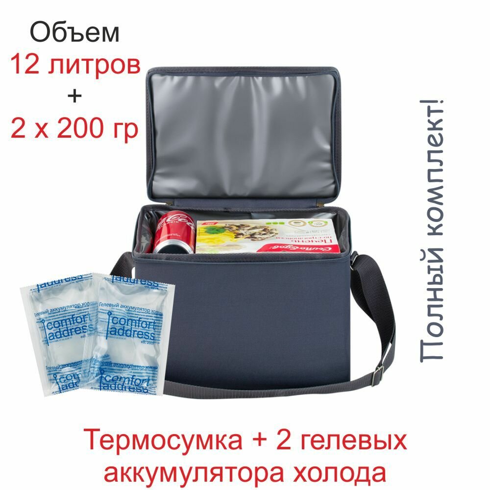 Рюкзаки Термосумка Comfort Address "EASY" 12л. серая + 2 гелевых хладоэлемента по 200 гр.