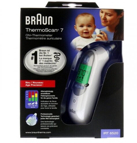 Бесконтактный инфракрасный ушной термометр Braun ThermoScan 7 ® IRT 6520 with Age Precision ®, Германия
