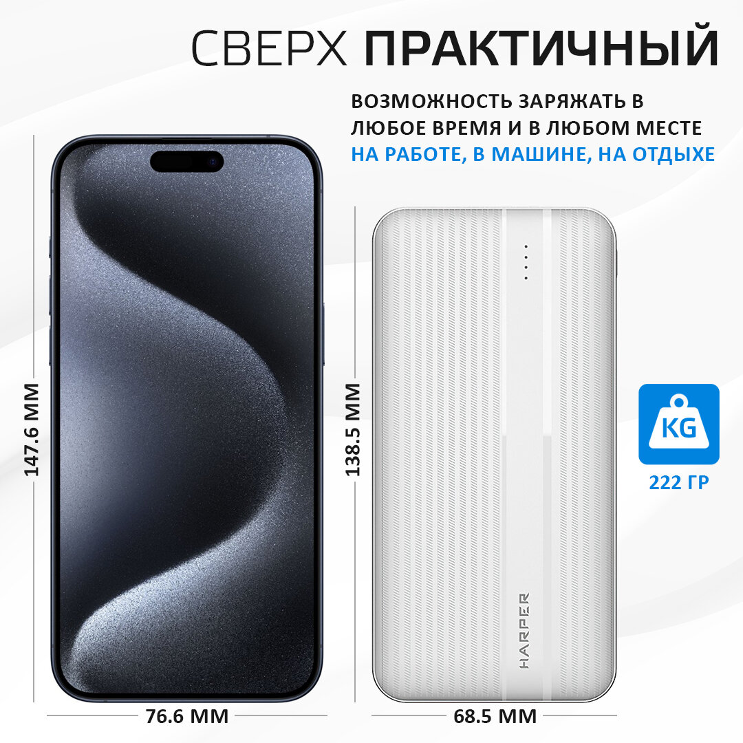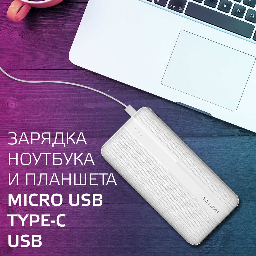 Powerbank Внешний аккумулятор HARPER PB-10006 (10 000 мАч, Quick Charge 3.0 и Power Delivery), белый