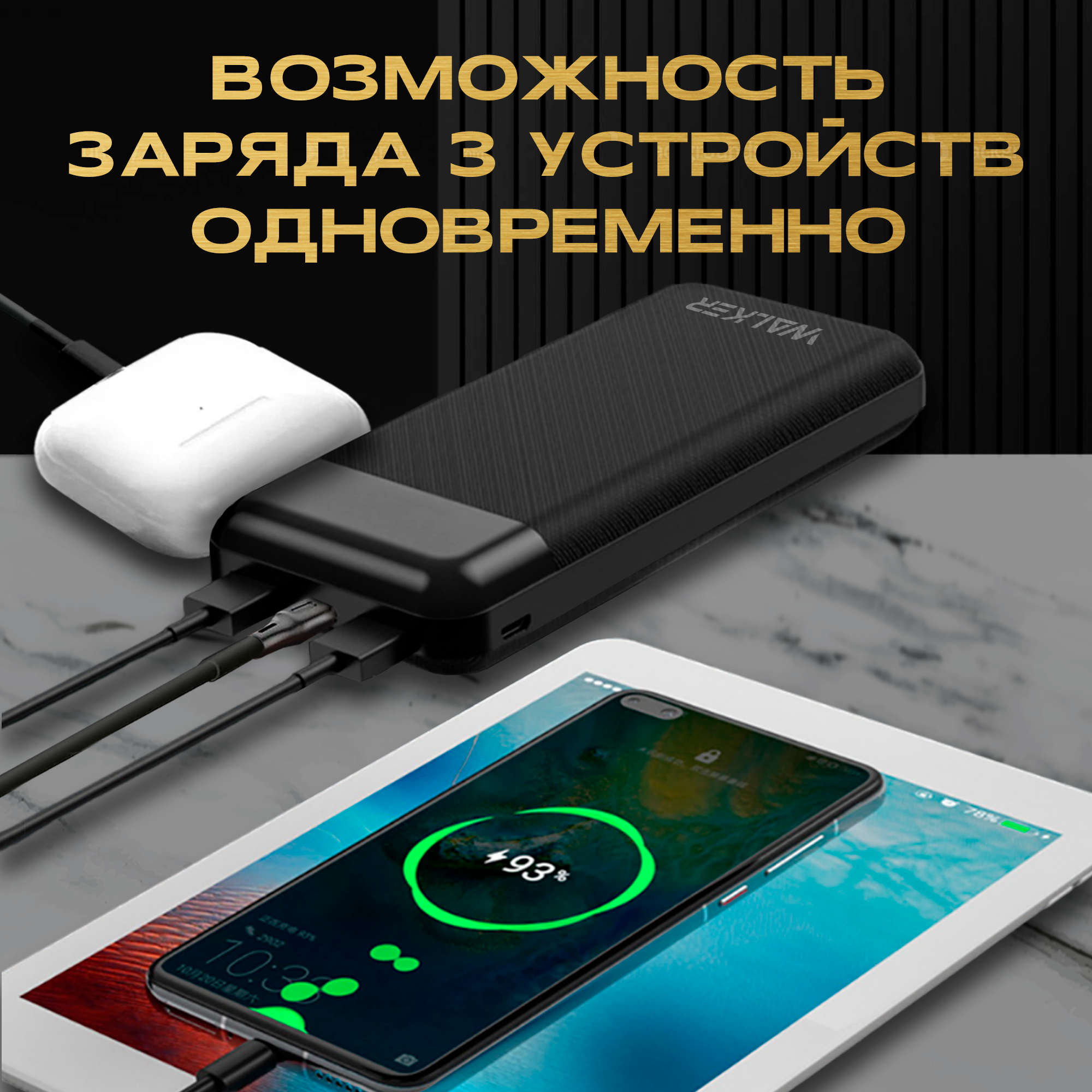 Powerbank Повербанк (powerbank), WALКЕR, 20000mah с быстрой зарядкой, пауэр банк, внешний аккумулятор для телефона iPhone, Xiaomi, Samsung, power bank, черный