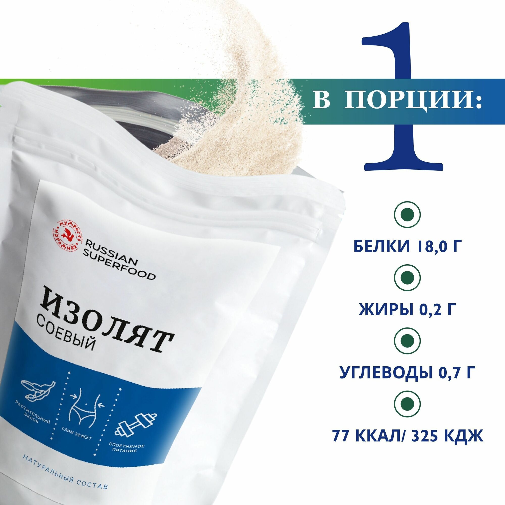 Изолят соевого белка, соевый протеин 400 г/Russian Superfood/для похудения и наращивания мышечной массы