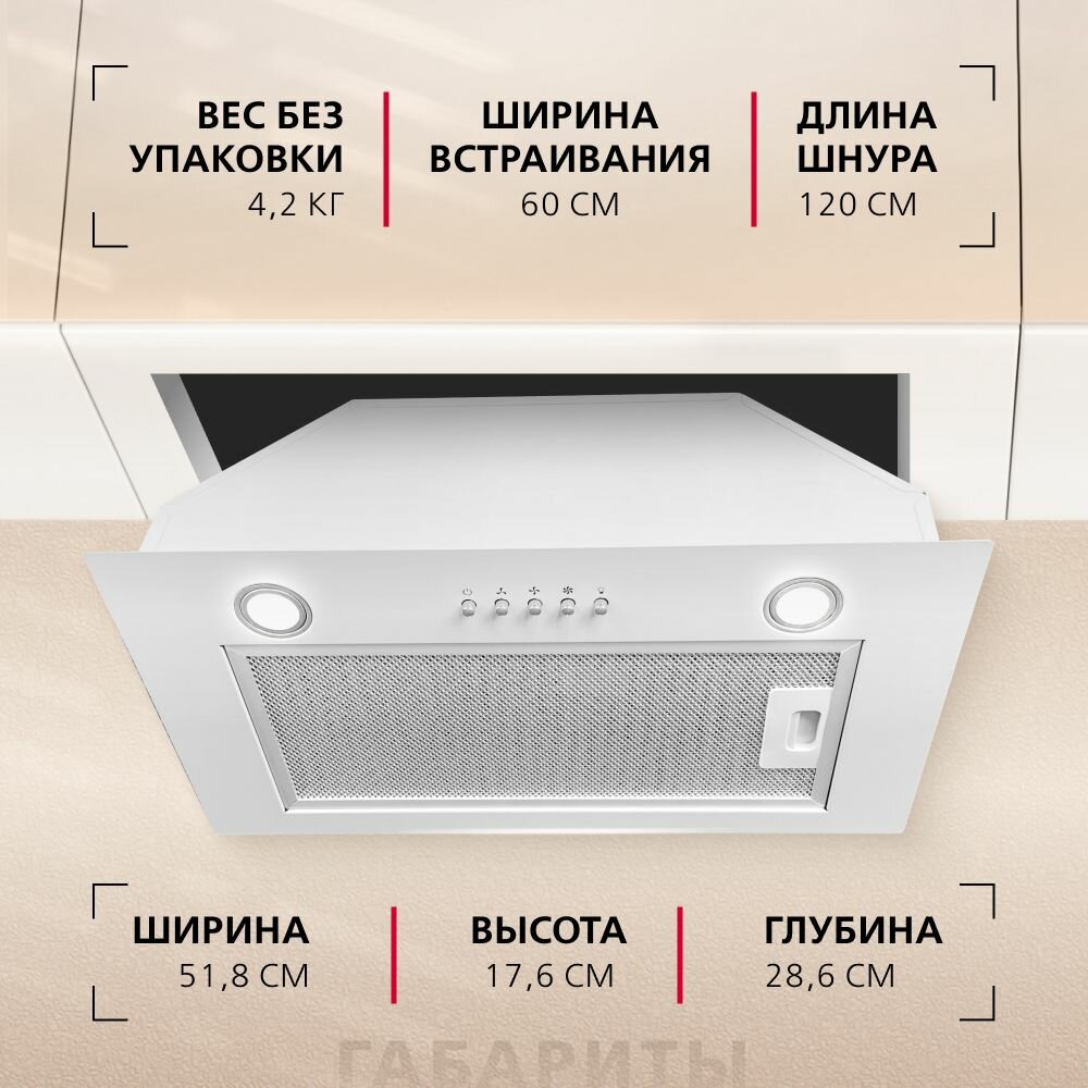 Вытяжки Встраиваемая вытяжка Hansa OMP6212WH, мощность 120Вт, белая