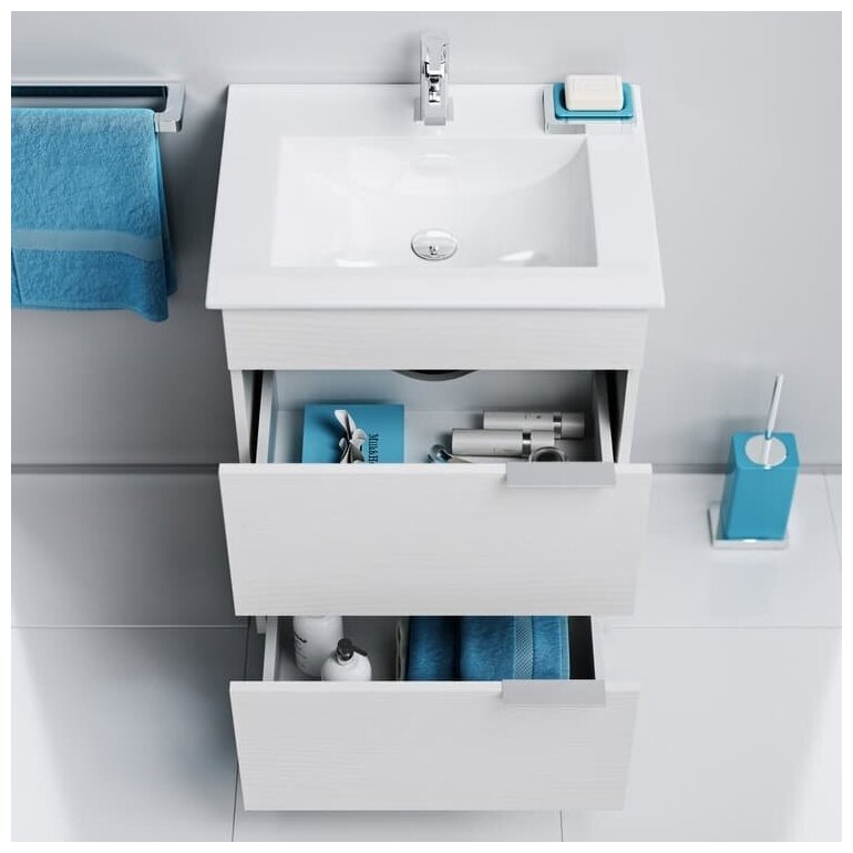 Тумба под умывальник Aqwella Бриг 60 напольная, 2 ящика, белый Br.01.06/2/W