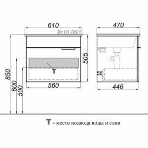 Тумба навесная без раковины Aqwella Brig подвесная Br.01.06/1/W
