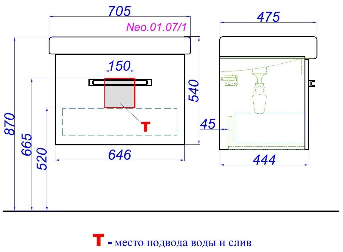 Тумба под умывальник Тумба Aqwella Нео Neo.01.07/1