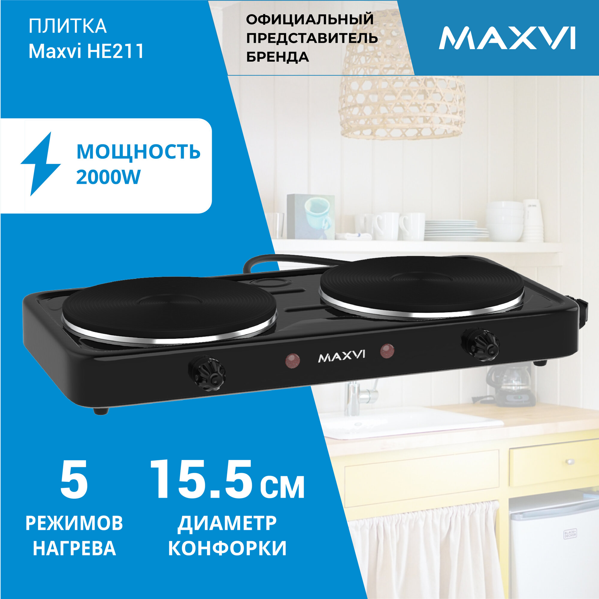 Плиты Электрическая настольная плита Maxvi HE211 2 конфорки, черная