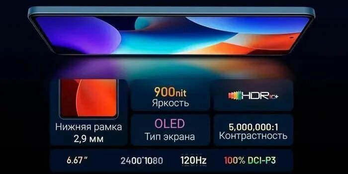 | Основной дисплей | 6.88 " / 1640x720 / 260 ppi / IPS / 120 Гц |