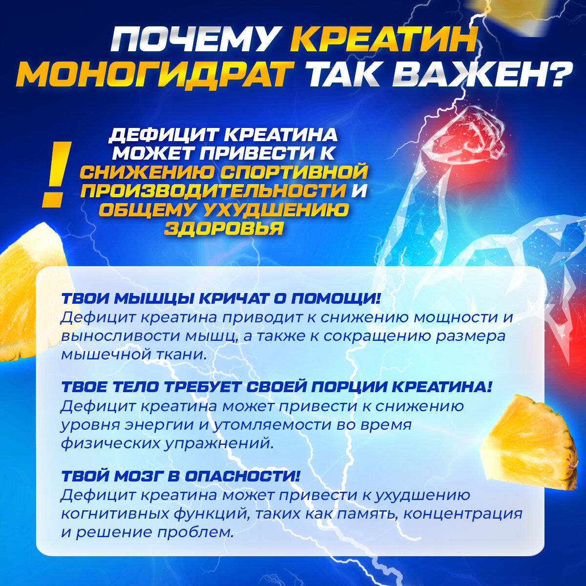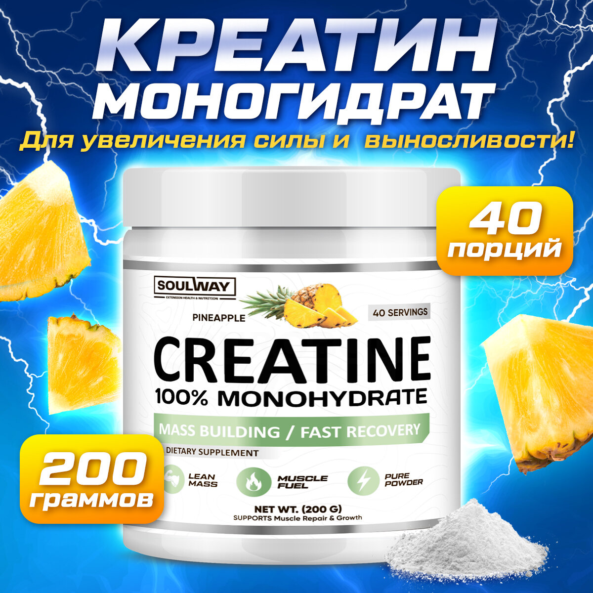 Креатин Креатин моногидрат со вкусом ананас порошок 200 гр 40 порций, спортивное питание для набора мышечной массы
