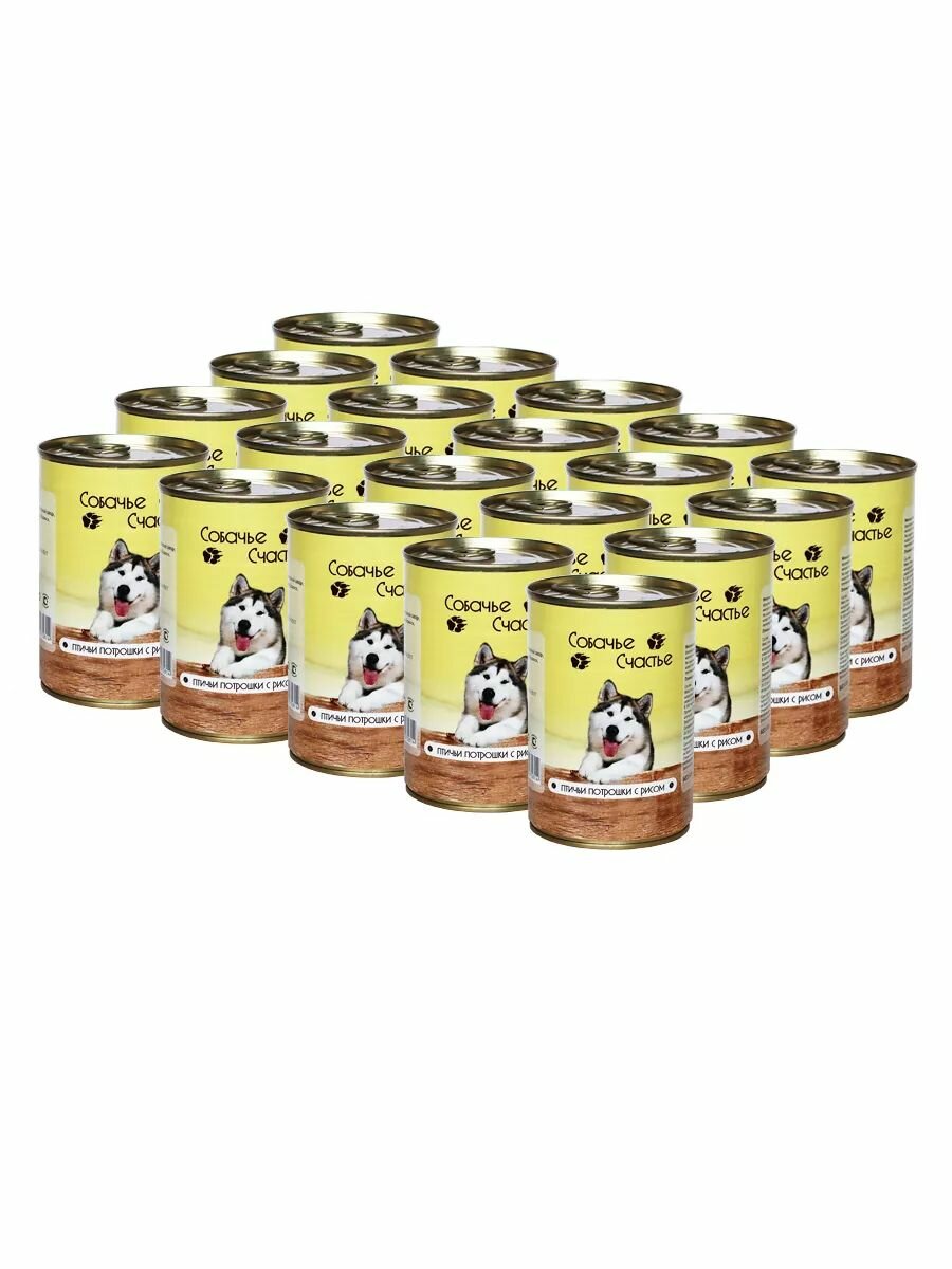Собачье счастье для взрослых собак с птичьими потрошками и рисом (410 гр х 20 шт)