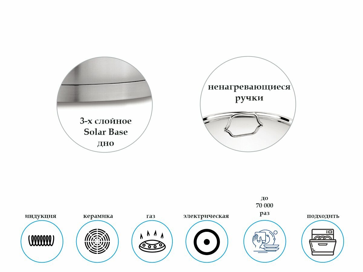 | Дополнительно | совместимость с индукцией / мытье в посудомойке / использование в духовке / многослойное дно |
