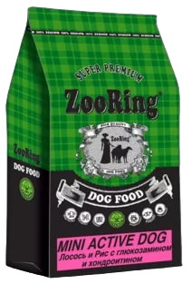 Корм для собак Сухой корм для собак ZooRing с глюкозамином и хондроитином, для активных животных, лосось, с рисом 2 кг (для мелких пород)