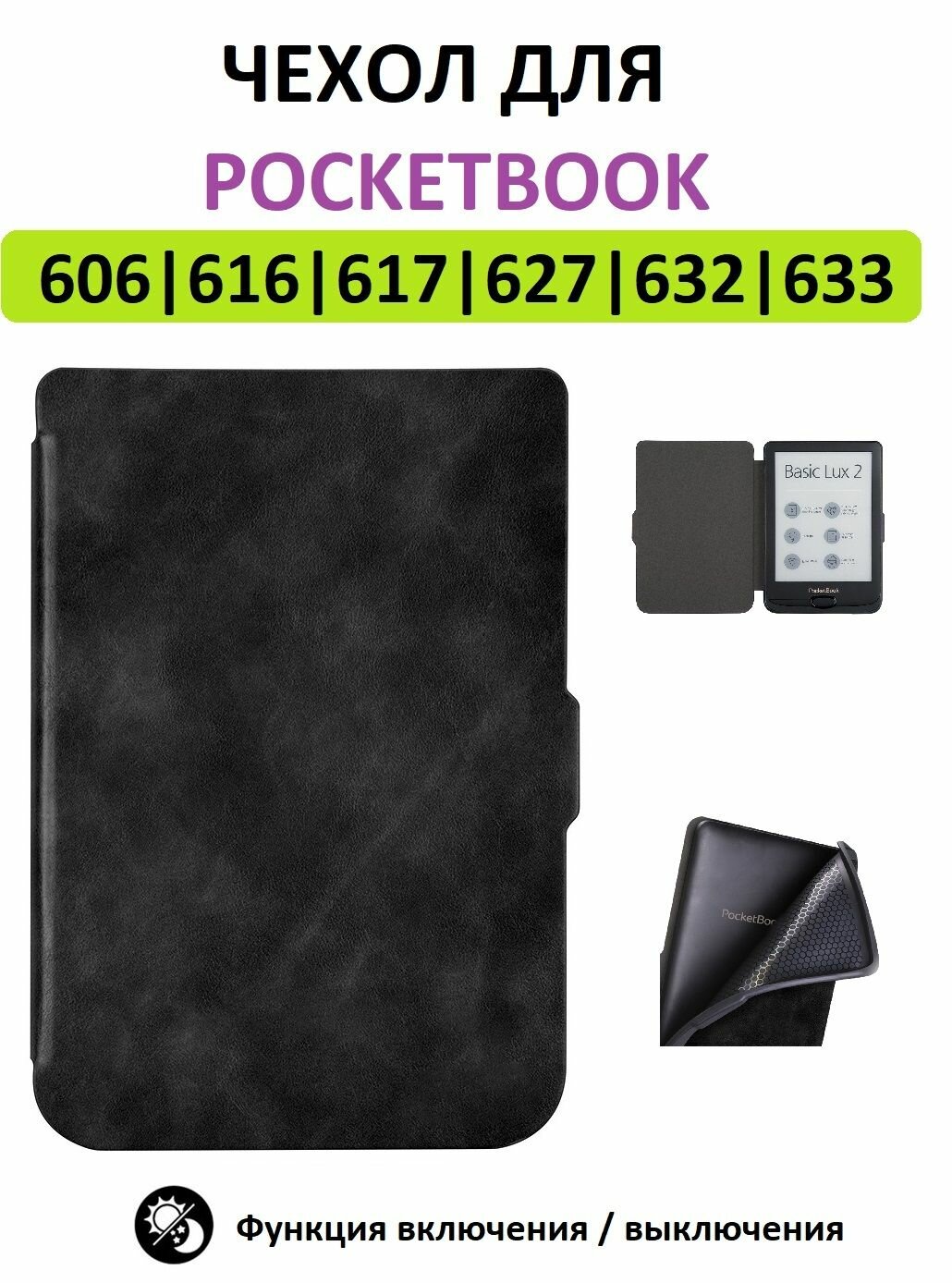 Чехол к эл. книге Чехол-обложка Goodchoice Slim для Pocketbook 606 616 617 618 627 628 632 633 (черный)