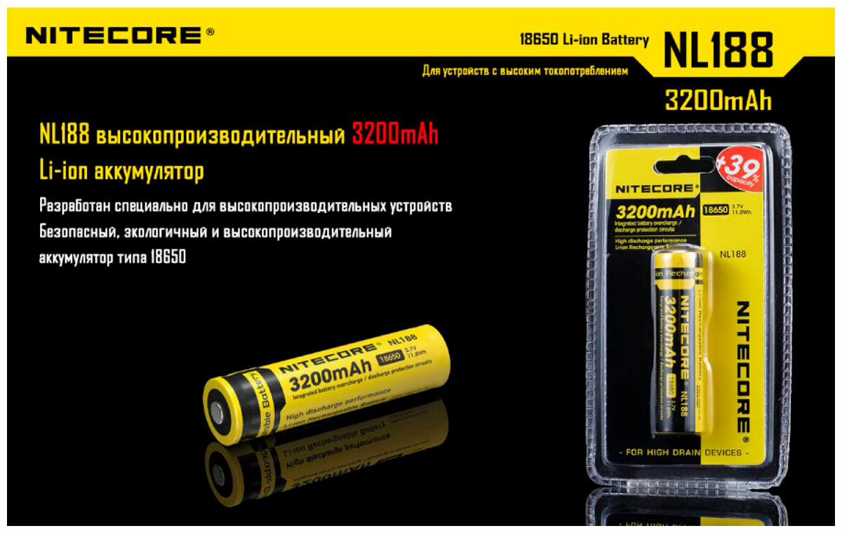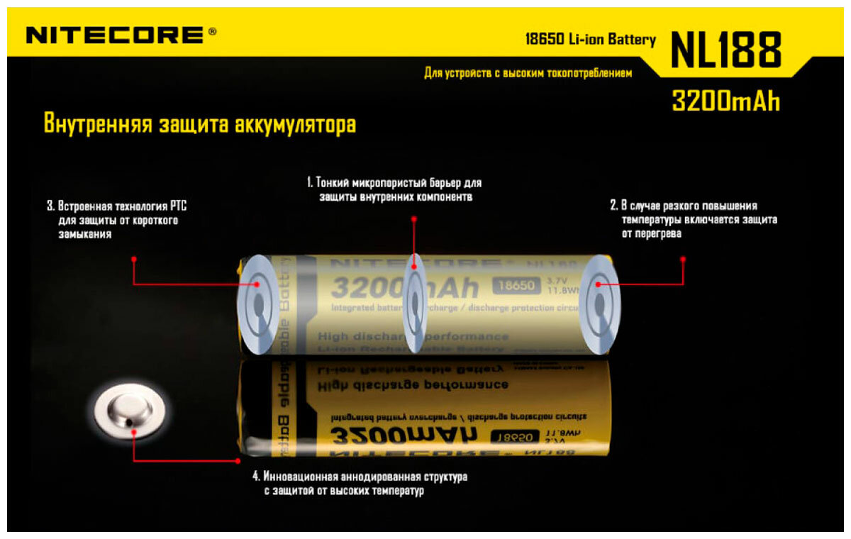 Аккумуляторы и батарейки Аккумулятор Nitecore NL1832 18650 3.7v 3200mA