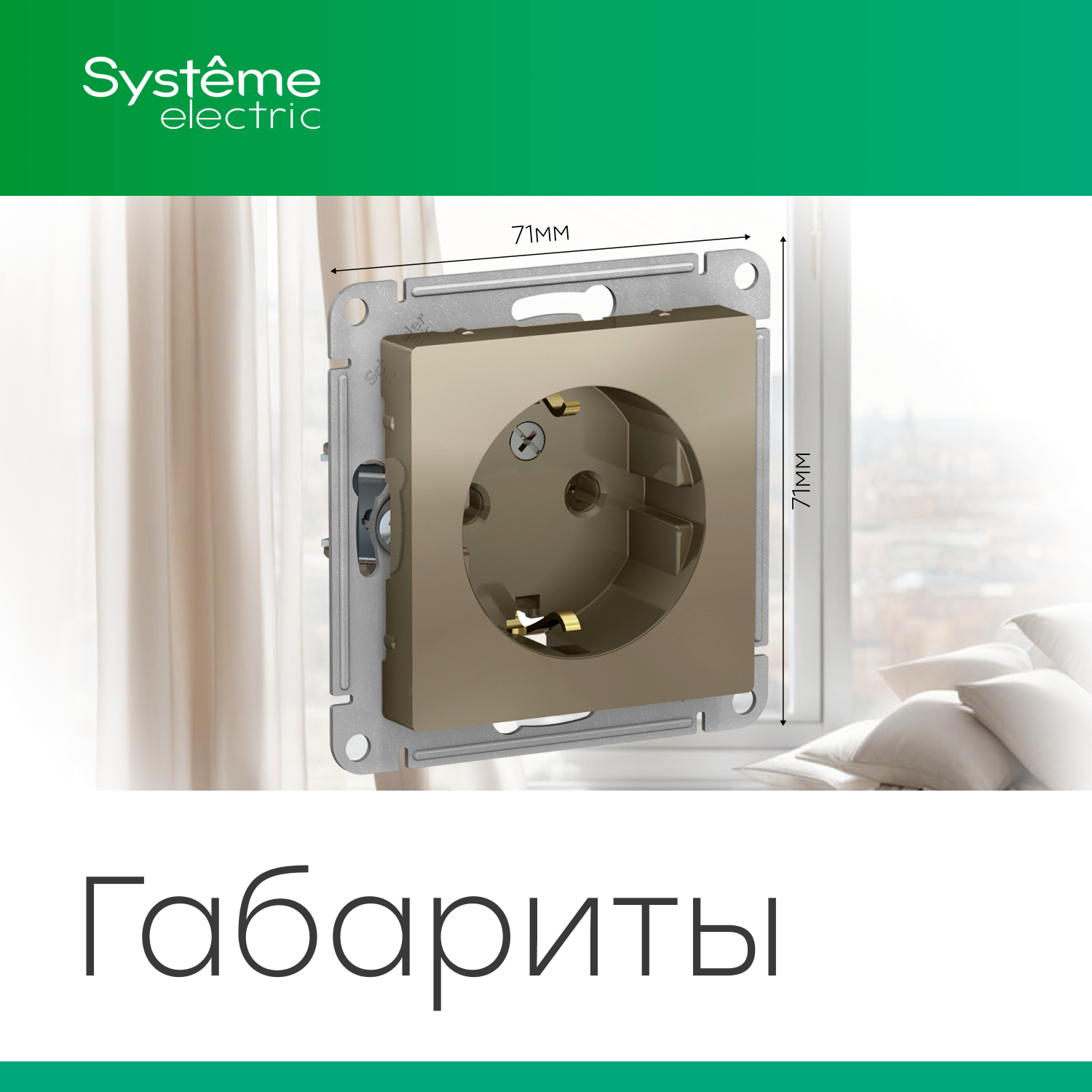 Розетка Systeme Electric (Schneider Electric) AtlasDesign, с заземлением, без шторок, 16А, механизм, шампань, ATN000543, 15 шт