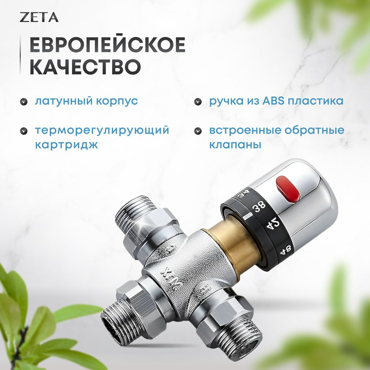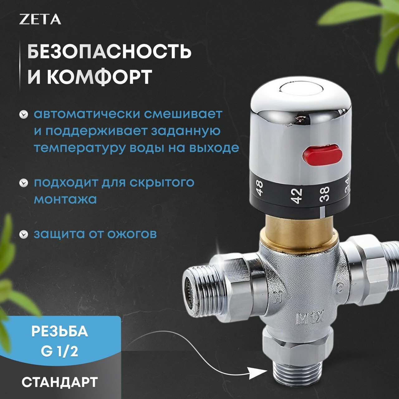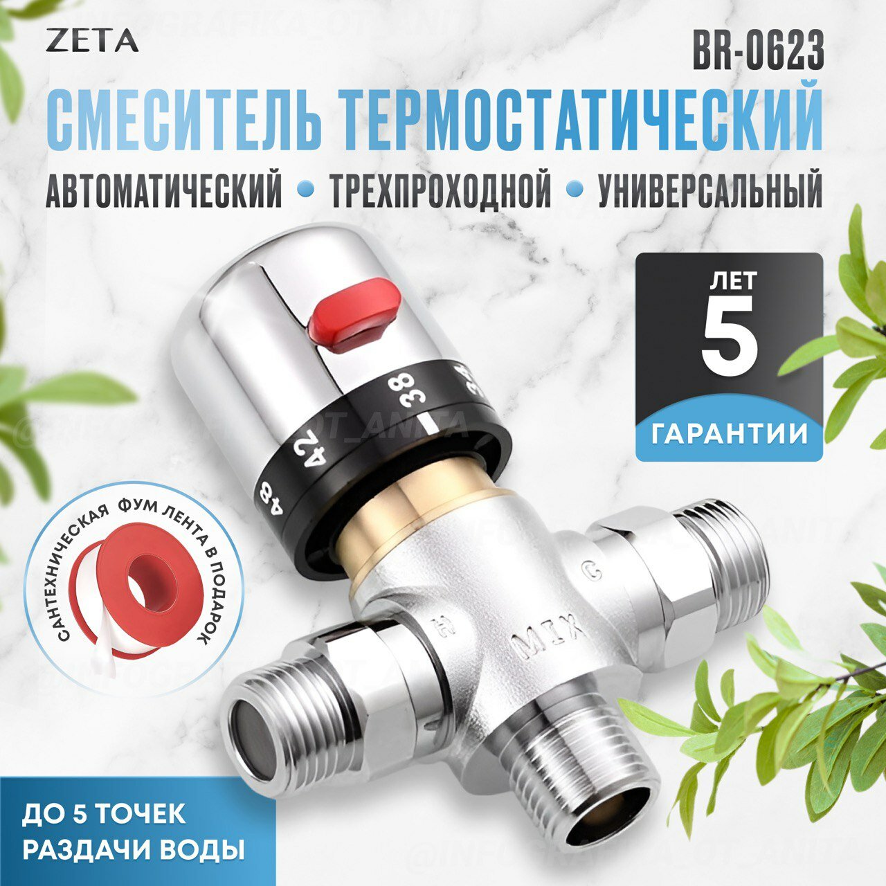 Смеситель Автоматический термостатический смеситель ZETA BR-0623, серебристый, латунь