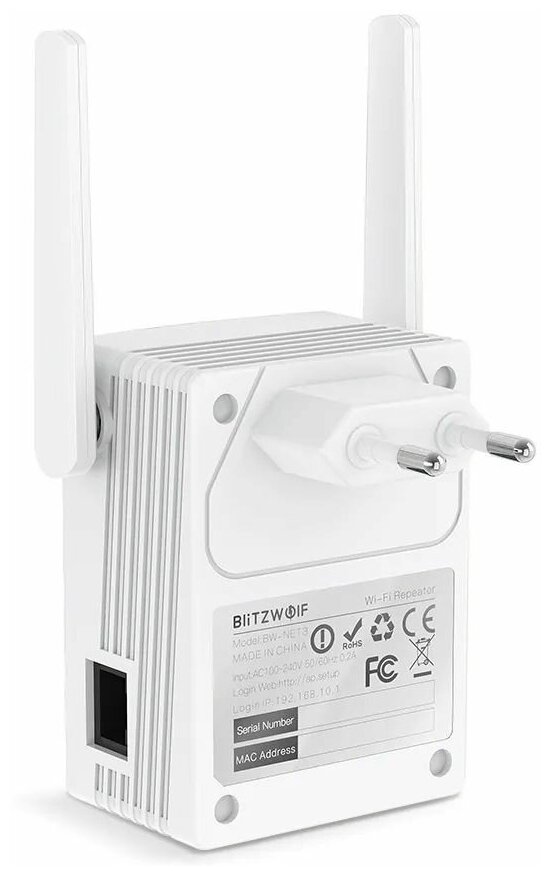 Wi-Fi оборудование Усилитель беспроводного сигнала BlitzWolf BW-NET3 2.4G+5G Wireless Range Extender 1200M White