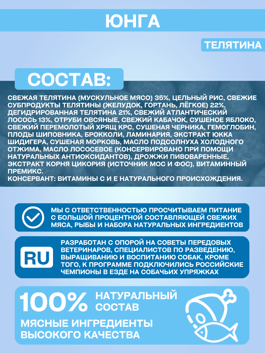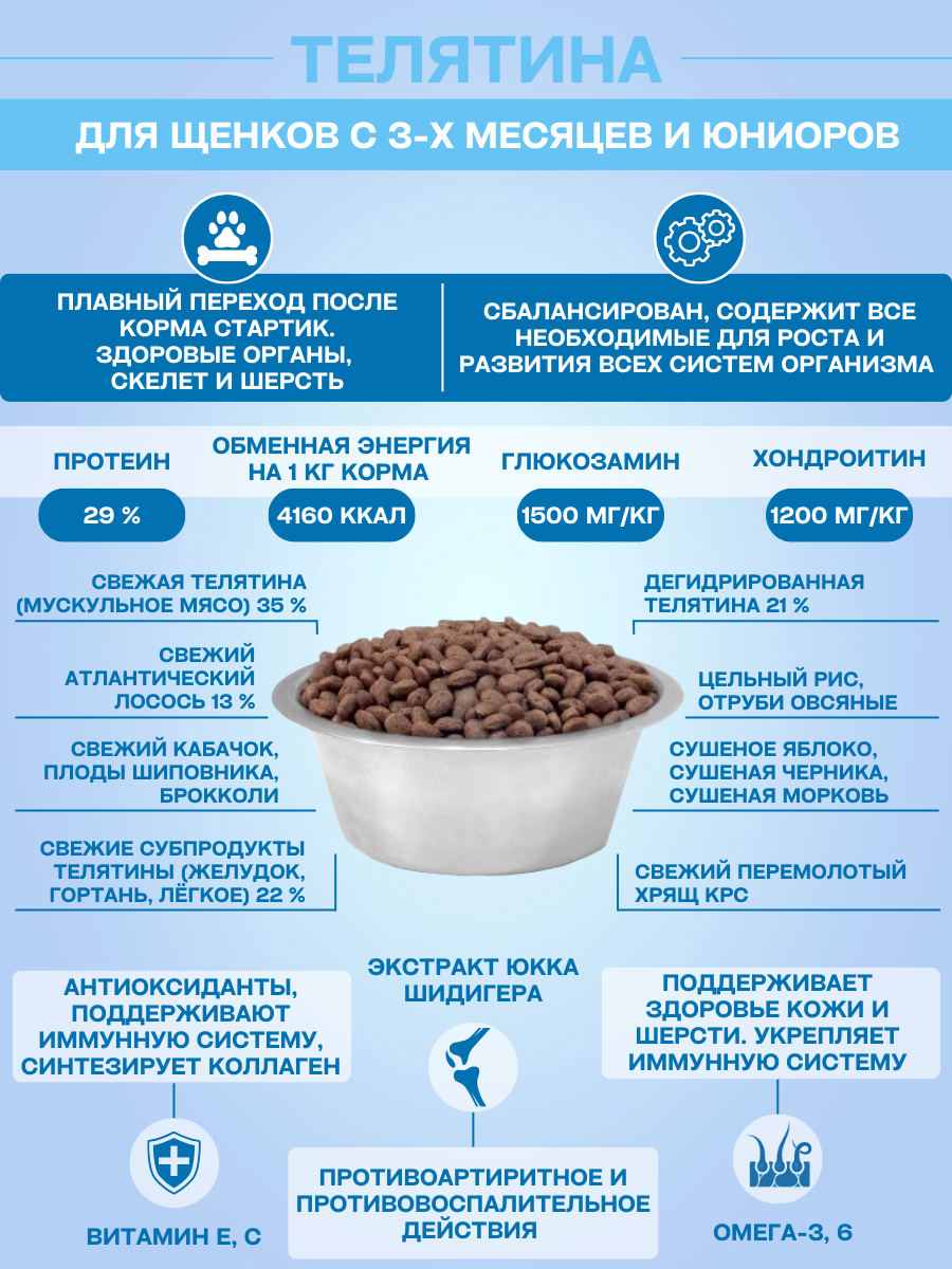 2,5 кг Сухой корм JJ-SPORT Юнга. Для щенков и Юниоров с 3 месяцев, с Телятиной. Мелкая гранула. Холистик