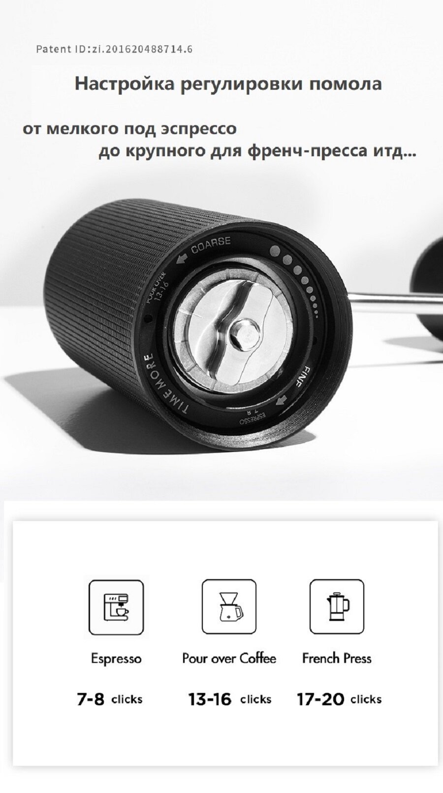 Кофемолка ручная Timemore Chestnut C3, чёрная, механическая, жерновая мельница для зерен кофе