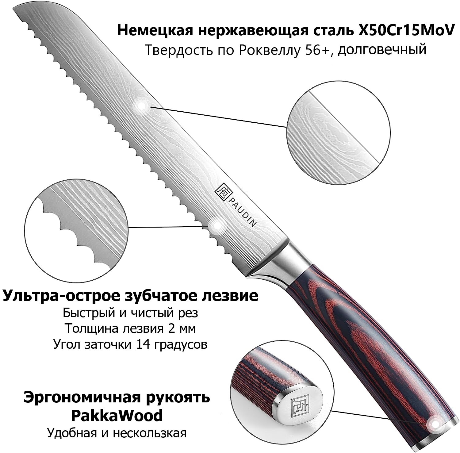 PAUDIN Pro / Набор ножей кухонных профессиональных шеф повара, сантоку, для хлеба, универсальный и фруктовый для мяса рыбы и овощей 9 790 ₽ Подробнее