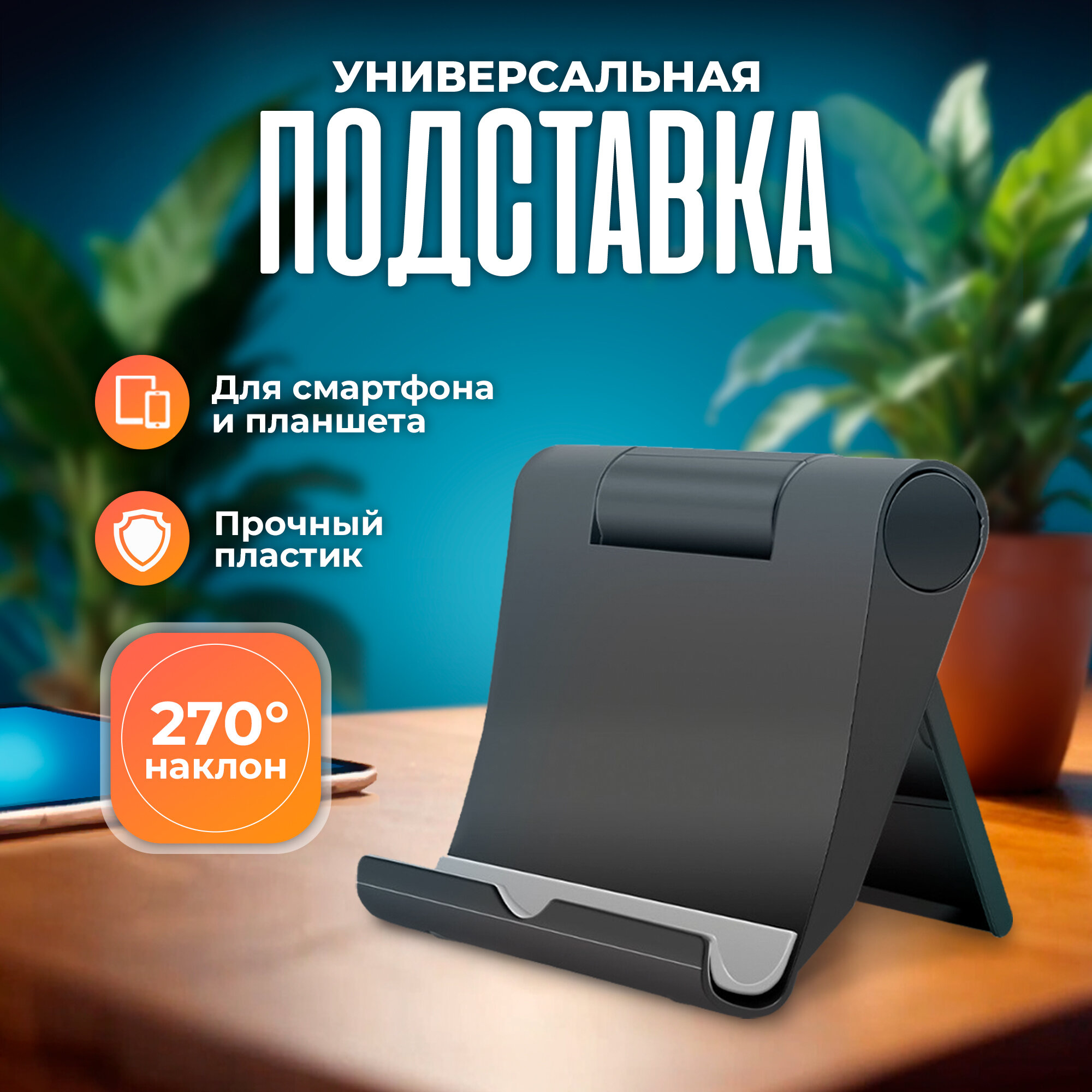Подставка держатель для телефона на стол, аксессуар для планшета, смартфона, электронных книг настольная, кронштейн Android, iphone, черная