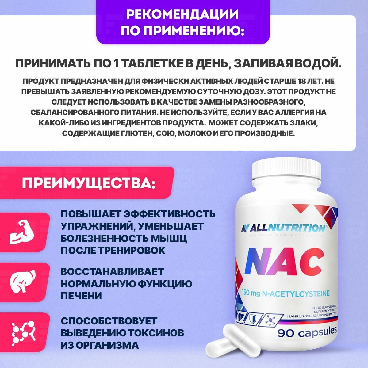 Аминокислоты N-ацетилцистеин детокс для печени, AllNutrition NAC, 150мг 90 капсул
