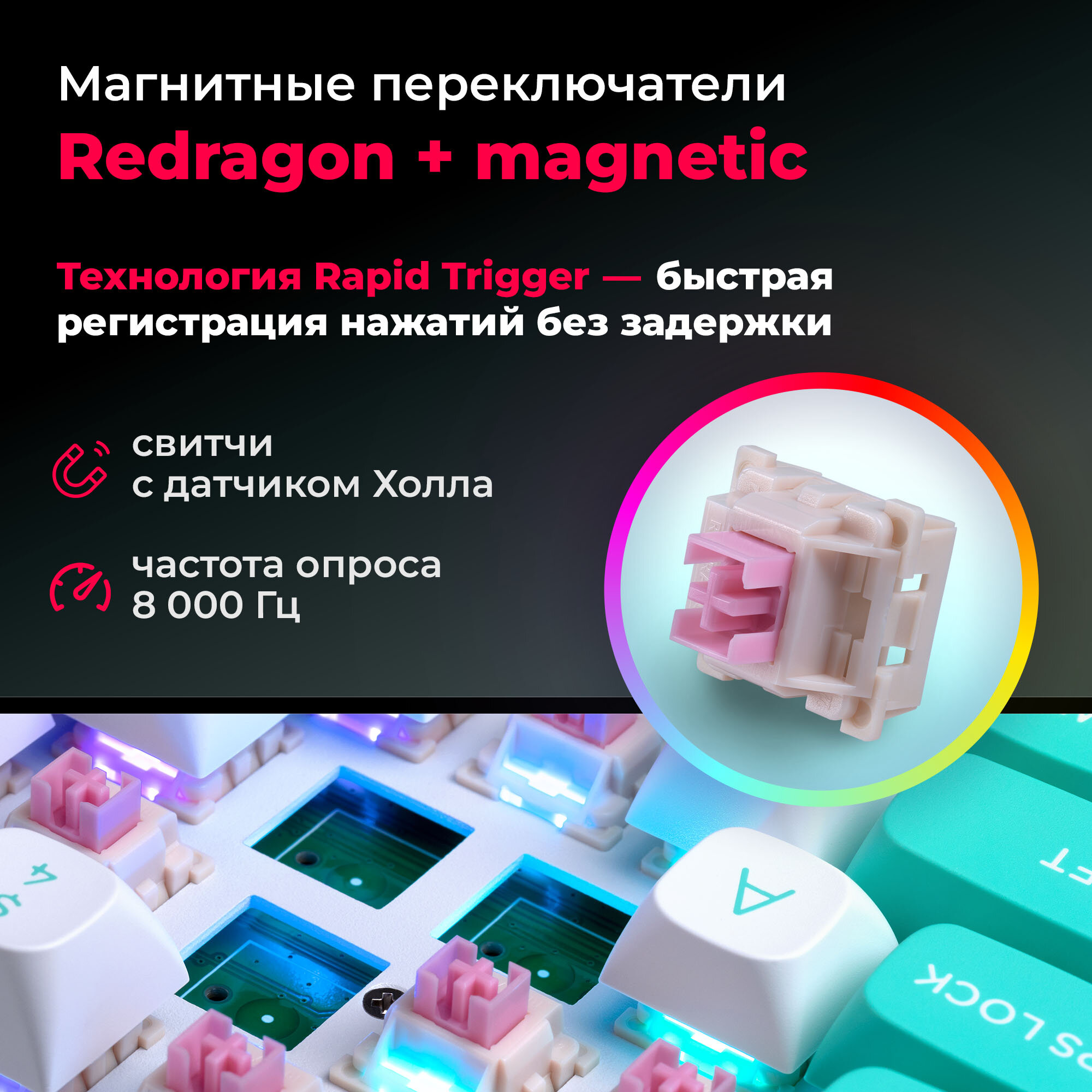 Игровая клавиатура механическая Redragon Fizz Радужная тихая, бело-розовая компактная (60%) 2 726 ₽ Подробнее