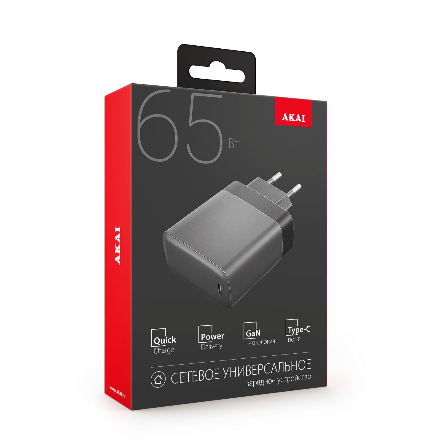 Зарядное устройство Универсальное сетевое зарядное устройство AKAI CH-6A15 GaN 1x Type C, 65 Вт CH-6A15B