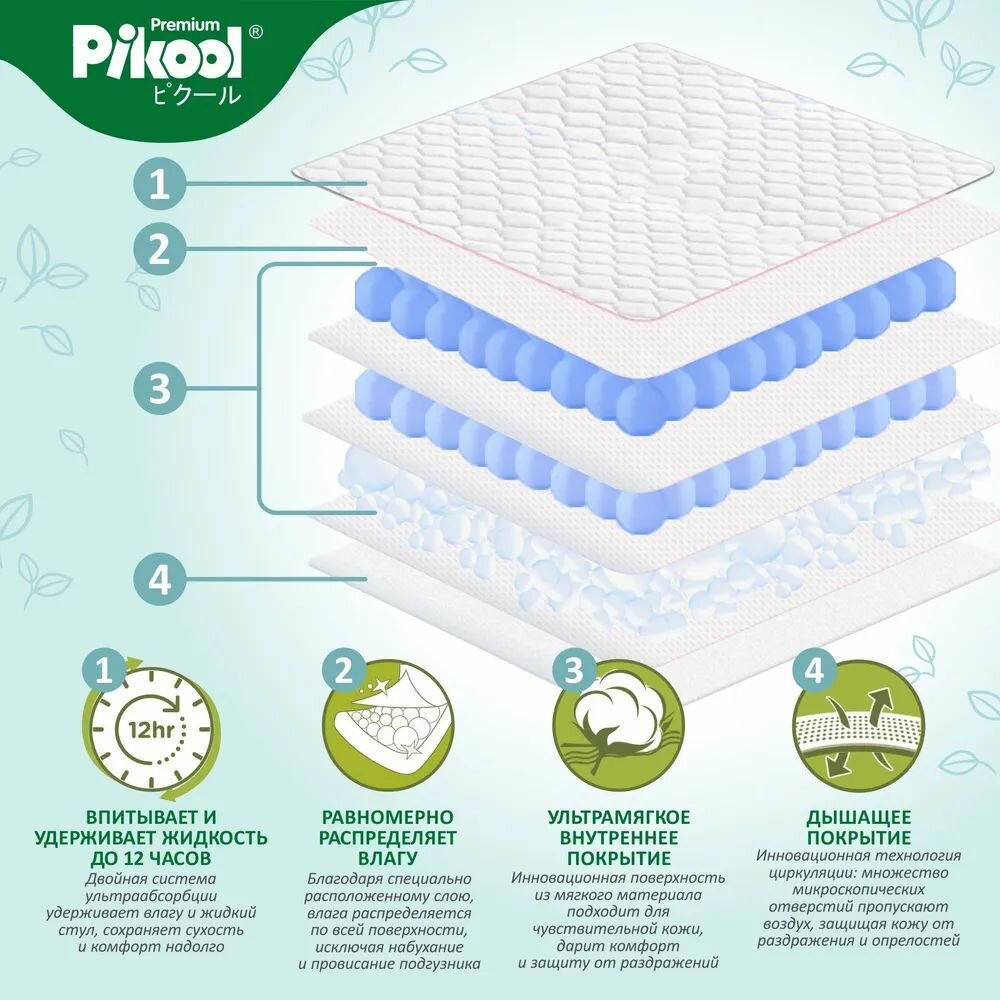 Подгузники Подгузники-трусики детские Pikool Premium, размер M, 8-13 кг, 64 шт