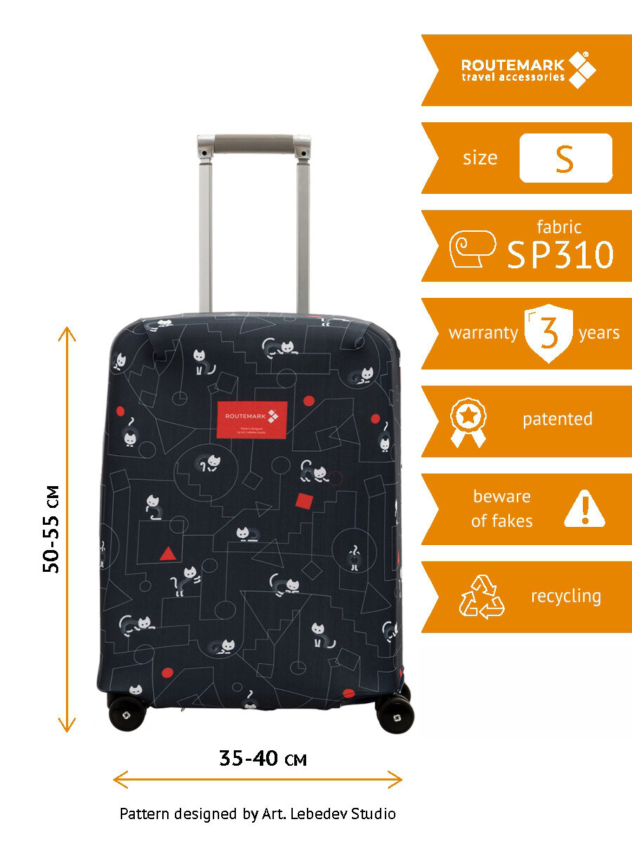 Чемоданы Чехол для чемодана «Коты и порядок в черном» с паттерном Студии Артемия Лебедева S (SP310)