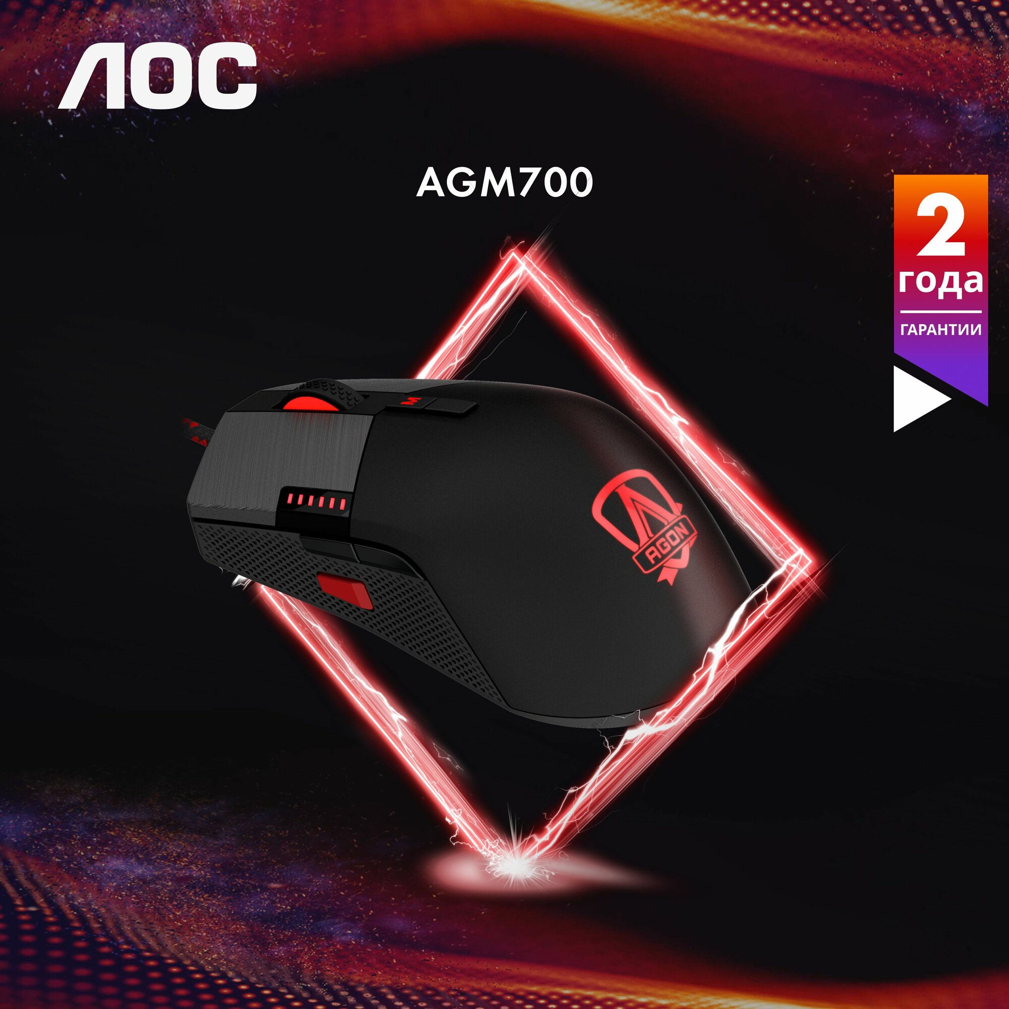 Мышки AOC Мышь игровая AGM700, RGB-подсветка, 8 клавиш, USB кабель 1,8 м, чёрный.