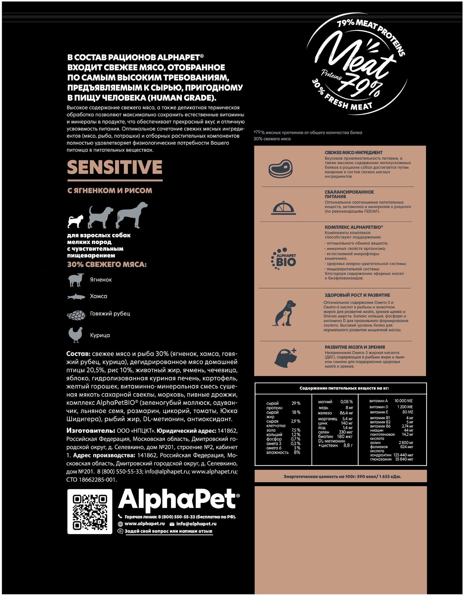 Корм для собак Корм AlphaPet Superpremium для собак малых пород с чувствительным пищеварением, c ягненком и рисом, 1.5 кг