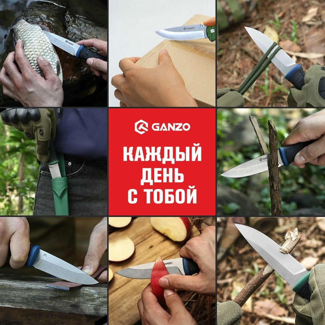 Нож фиксированный с ножнами туристический тактический походный охотничий для выживания и охоты GANZO G806 черный с синим