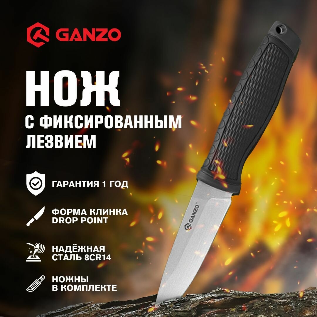 Ножи и мультитулы Нож фиксированный с ножнами туристический тактический походный для выживания и охоты GANZO G806 черный