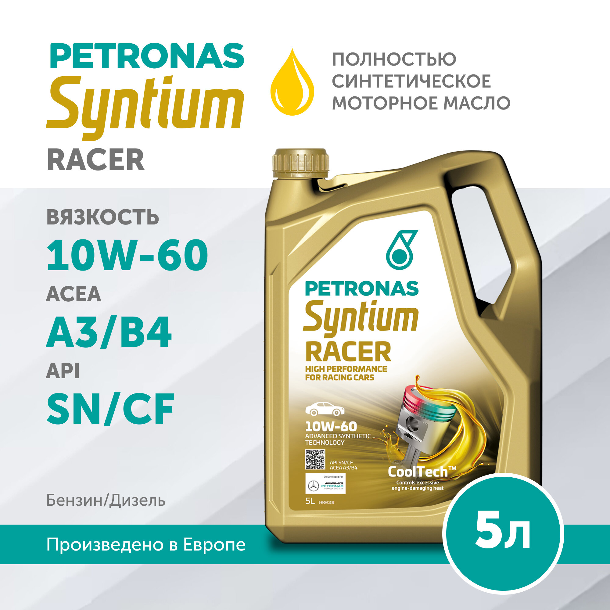 Моторное масло Моторное масло PETRONAS RACER 10W-60 Синтетическое 5л API SN/CF, ACEA A3/B4, FCA 955535-H3, 70000M12EU