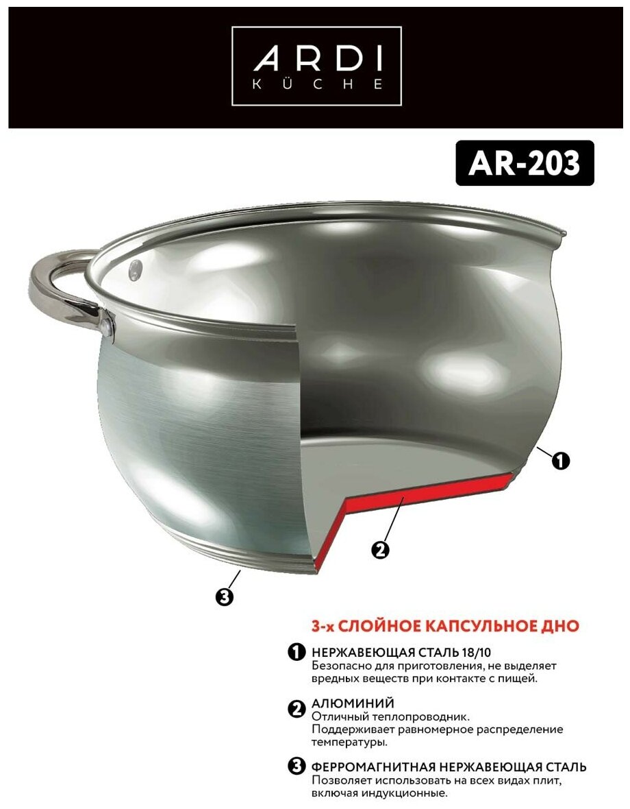 Кастрюля ARDI KÜCHE AR-203 со стеклянной крышкой