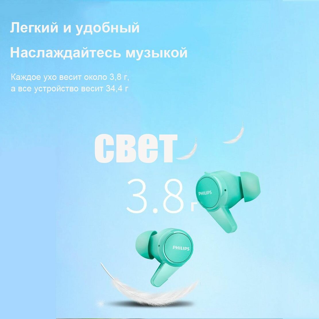 Наушники Наушники беспроводные PHILIPS True Wireless Bluetooth Headset TAT1207 зеленый, 2.0, внутриканальные, 20 Гц - 20000 Гц, 16, Bluetooth, 5.2, TWS