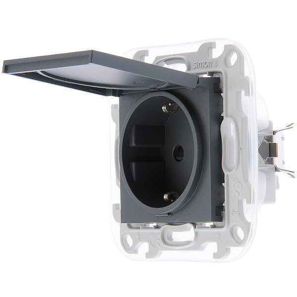Розетки Механизм розетки Simon24 2420448-038 "евро" с крышкой со шторками Push\Go IP44 с/п графит Simon (2 шт. в наборе)