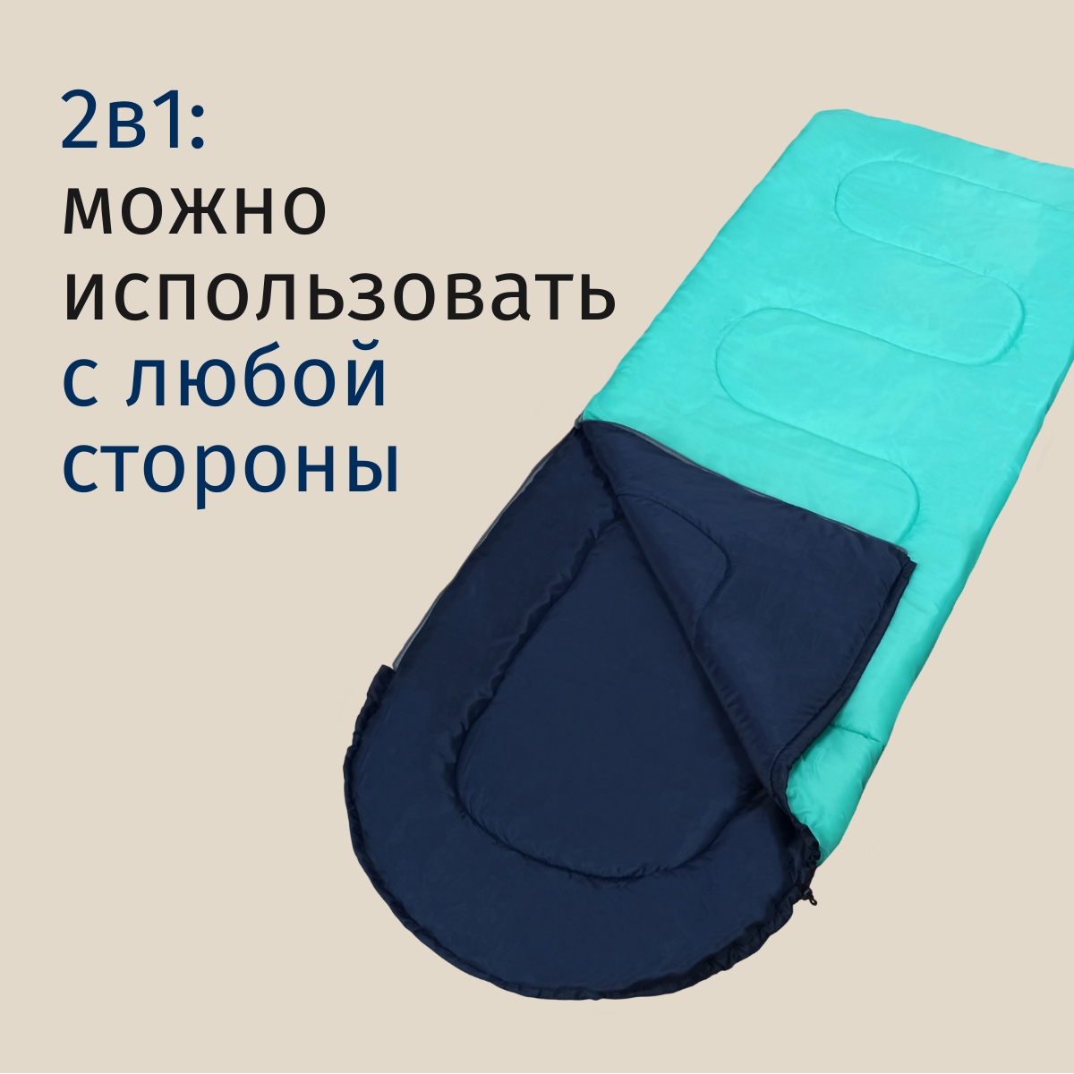 Спальные мешки Спальник туристический чайка СП150 синий/мята с подголовником