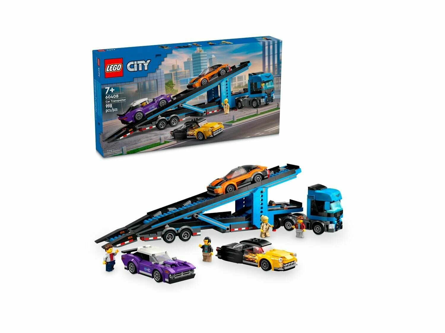 Конструкторы Конструктор LEGO City Грузовик-автовоз со спортивными автомобилями, 998 деталей, 60408