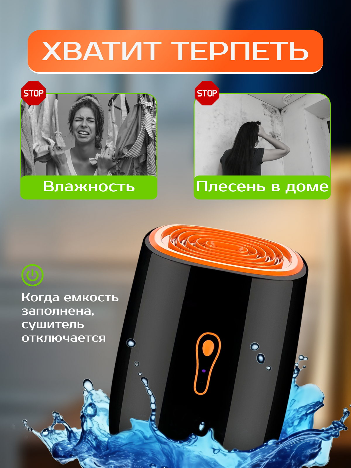 Поглотитель влаги для дома от плесени и грибка осушитель воздуха для квартиры настольный 25Вт 300 мл/24 ч 20 кв. м. цвет черный 4 419 ₽ Подробнее