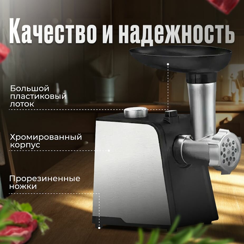 | Насадки | 3 диска для фарша / для кеббе / для домашних колбас / формочка для котлет |