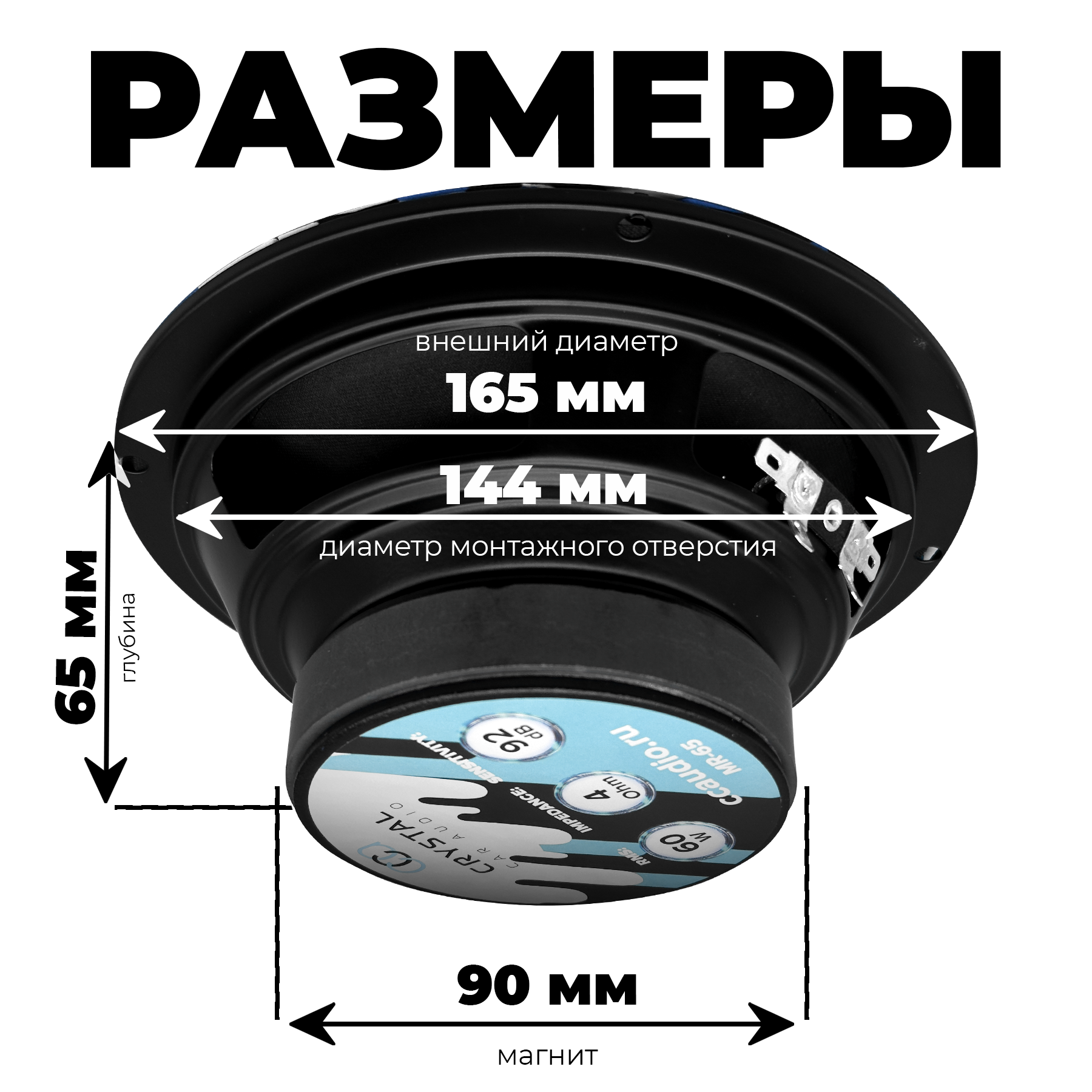 Аудиосистемы Колонки автомобильные, Crystal Car Audio MR-65, автозвук динамики 16 см, акустика для авто,