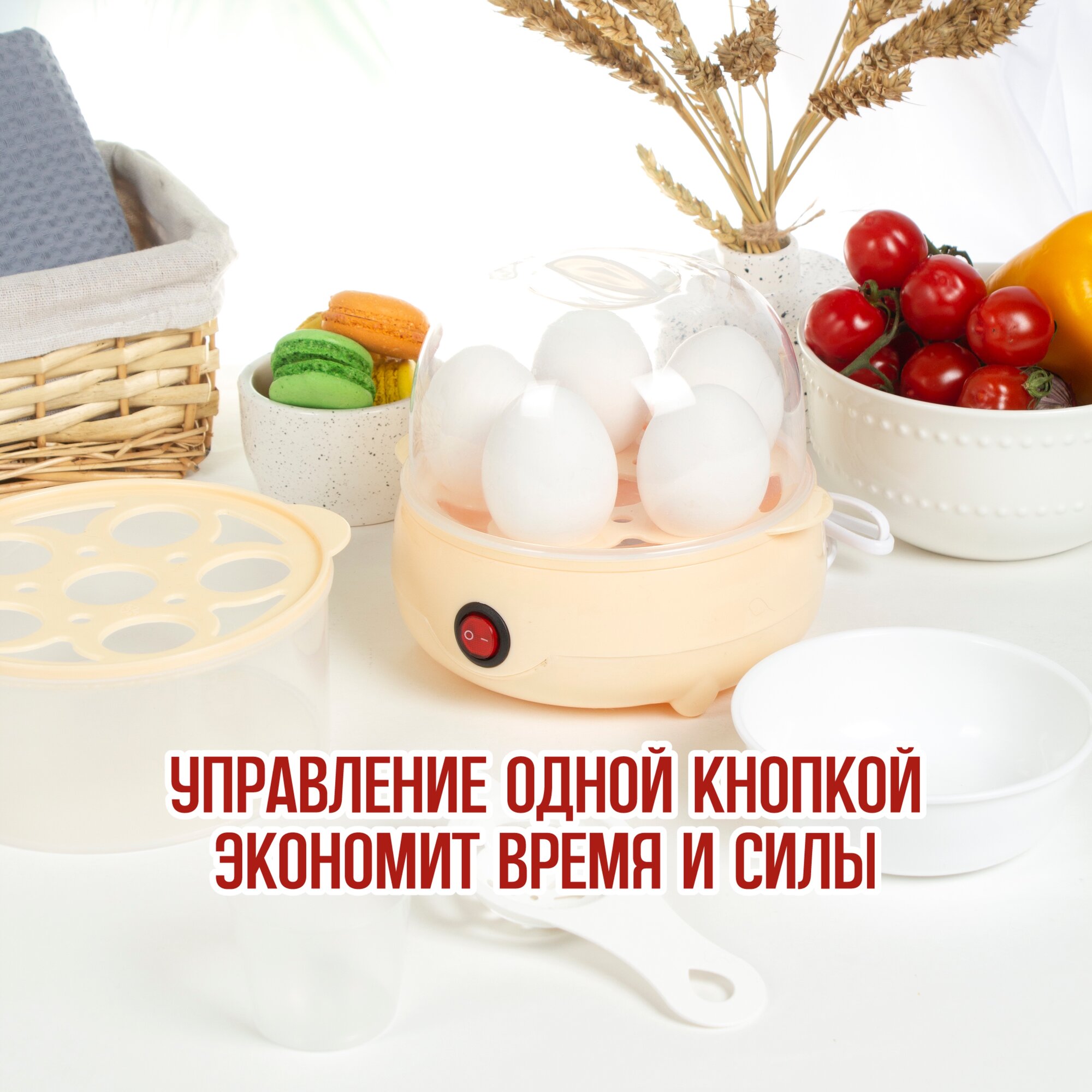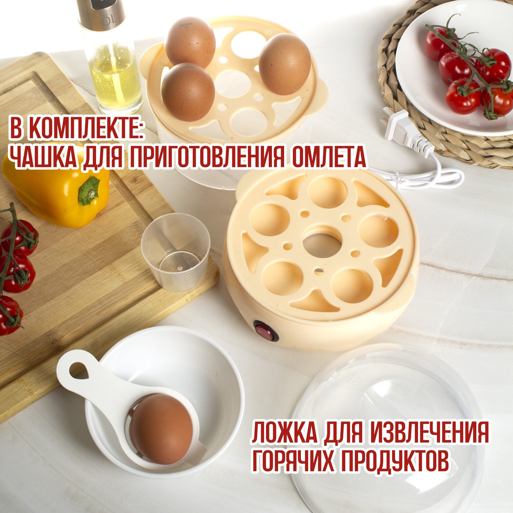 Пароварки и яйцеварки Яйцеварка электрическая, 12 яиц, с автовыключением, защита от перегрева, бежевая
