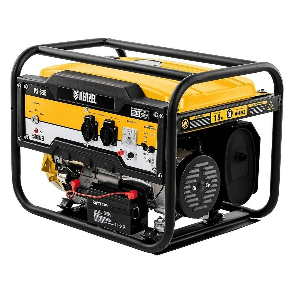 Бензиновый генератор Denzel PS-33E, 3,3 кВт, 230В, 15 л, электростартер 94537