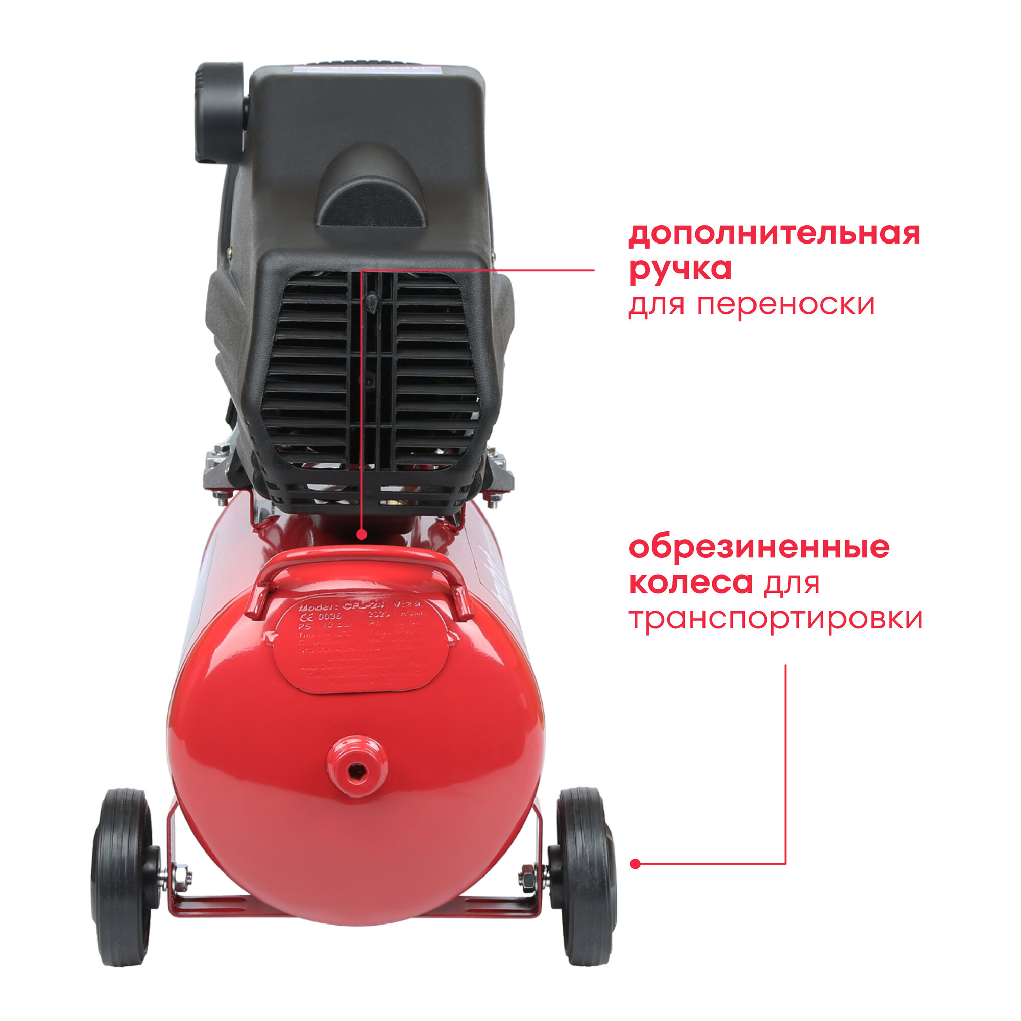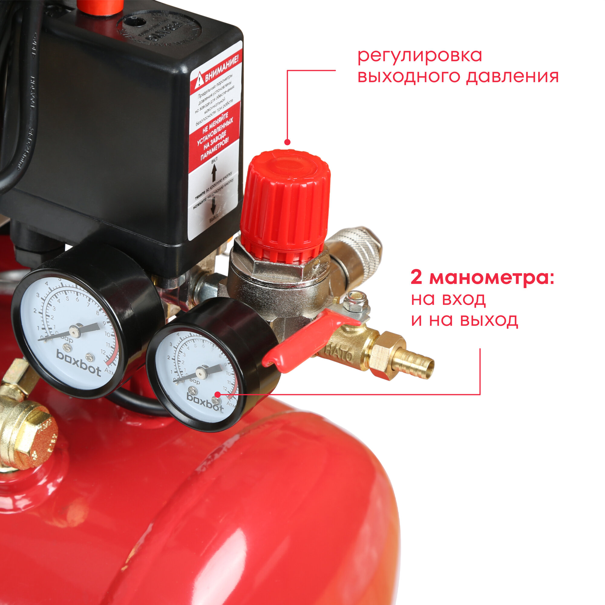 Компрессоры Компрессор поршневой масляный Boxbot, 24 л, 200 л/мин, быстросъемный коннектор, "елочка", 2 выхода к пневмолинии, VK 24-200