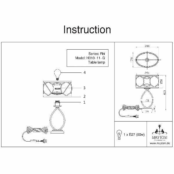 Настольная лампа Maytoni Fibi H310-11-G, Золото, E27 11 890 ₽ Подробнее