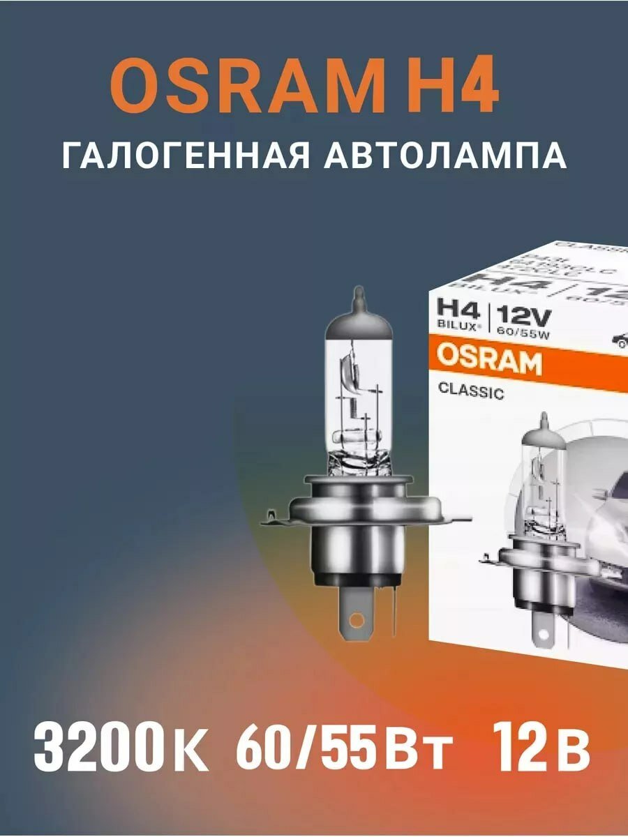 Автолампы Галогеновая лампа Osram H4 (60/55W 12V) Classic 64193CLC