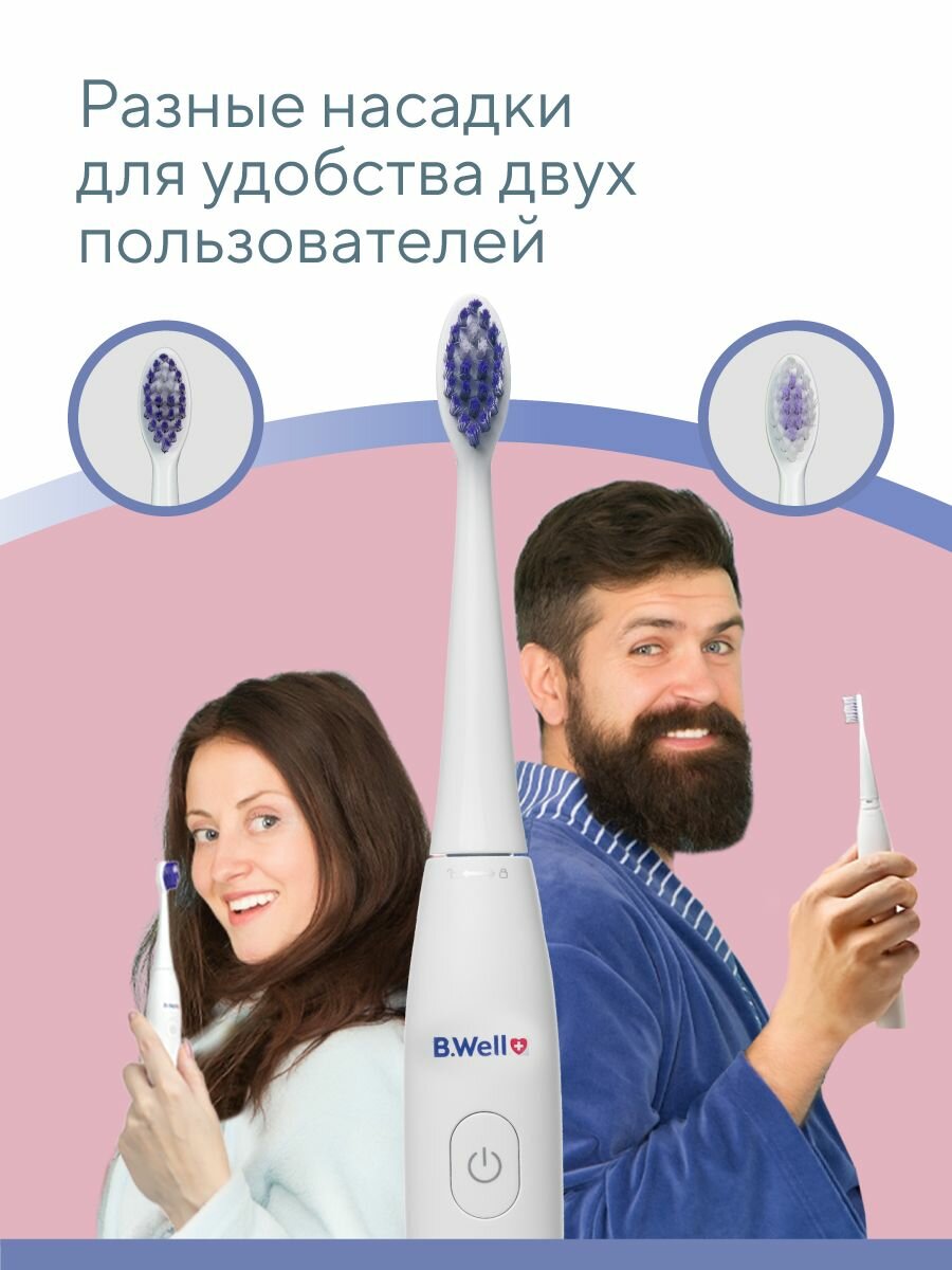 Электрические зубные щетки Электрическая зубная щетка B.Well PRO-850 звуковая белая, 5 режимов, 60 дней без подзарядки